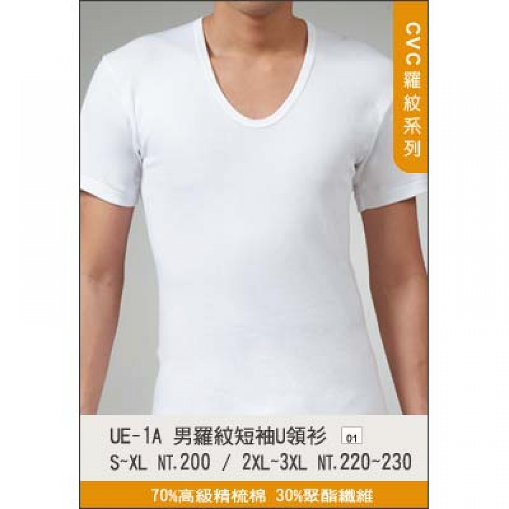 UE-A1A 男羅紋短袖U領衫S-XL